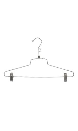 When you have a retail store with a variety of clothing, you can make hanging them easy on yourself! With our Heavy Duty 16″ Chrome Metal Combination Hangers, you can easily create a merchandise display for any of your garments. The Loop Hook helps to create a unique look for hanging apparel, making certain displays stand out more than others. Featuring metal clips, a hang bar, and ribbed shoulders, these hangers will prominently display any shirts, pants, hangers, skirts or suits! These wholesale all purpose hangers are sold in cases of 25 at low prices. In stock and ready for immediate shipment. Sold in cases of 25, Heavy Duty Chrome Finish, Space Saving Design , Great for Use with Sample Clothing/Salesman Hanger, 85-24113