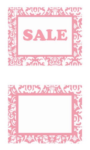 Boutique Signs for dressing up your store! Use these bold patterned signs to show off those sales! The Pink Damask printed border is sure to attract attention to your sales racks. Use with any of our sign holders to complete your Boutique look. Store Supply Warehouse has Boutique Signs in stock immediate shipment!Sold in cases of 25 Pack of 25, 5½”H x 7″W, Color: Pink Damask Pattern, Spacious White Block for Pricing or Lettering, 85-15720