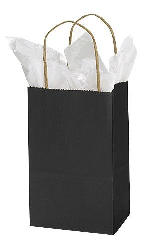 These black shopping bags feature handles and a gusset and are more tear resistant, providing durability, convenience, and simple storage options. Black is the original chic color. You can still add color to your store, without going too bold. Sold in 100 Quantities. 5 ¼” x 3 ½” x 8 ¼” (Rose), 70# Paper Weight , 85-92364