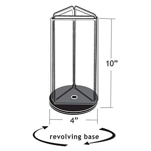 4″ W x 10″ H 3-Sided Sign Holder with Revolving Base made from clear acrylic and stands on a black revolving base. 4″ W x 10″ H, 3-Sided Sign Holder, Black Revolving Base, Clear acrylic construction, Item Id:85-193728