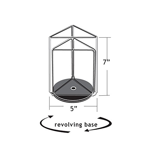 5″ W x 7″ H 3-Sided Sign Holder w/ Revolving Base made from clear acrylic and stands on a black revolving base. 5″ W x 7″ H, 3-Sided Sign Holder, Black Revolving Base, Clear acrylic construction, Item Id:85-193722