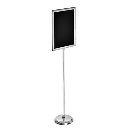 14″W x 22″H Double Sided Frame Floor Display. Slide-In frame stands on a 37.5″H non-adjustable metal pole with a 10″ diameter base. Weighted base keeps stand stable and upright. Overall frame size is 15.125″W x 23.125″H. Overall height is 60.625″. 14″W x 22″H , Double Sided Frame, Non-adjustable metal pole, 10″ diameter base, Item Id: 85-300286