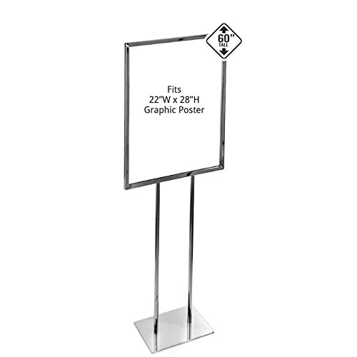 This metal single-frame easel display measures 22″W x 28″H. The base measures 14.25″W x 10″D. Overall height is 60″H. Available in chrome color only. 22″W x 28″H, Available in chrome color only, Overall height is 60″H, Metal Construction, Item Id: 85-300702