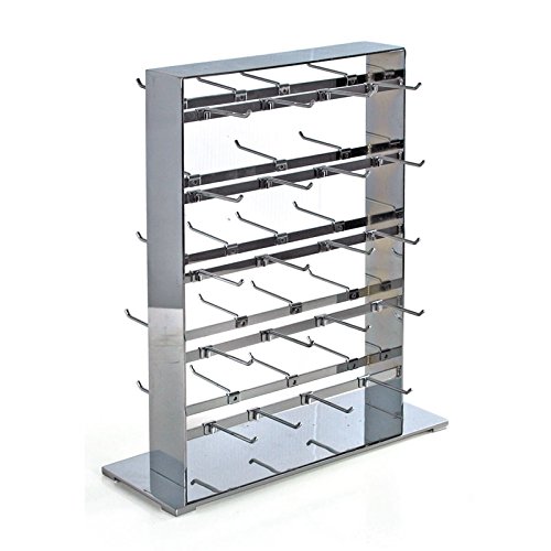 This two-sided chrome jewelry display measures 15″W x 5.5″D x 18.25″H and stands on a rectangular base. This display features five 12″W chrome bars per side and comes standard with 40 chrome hooks, each measuring 2″L and 0.125″ in diameter. Use up to 3″ vertical hanging height beneath each chrome bar. 15″W x 5.5″D x 18.25″H , Rectangular base, Five 12″W chrome bars , 40 chrome hooks, Item Id: 85 – 300640