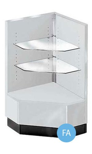 “Corner display cases are useful for providing additional storage space while also tying showcases together. This particular Metal Framed Front Corner Filler is designed to match all of our gray display cases. It’s constructed from a gray melamine laminate exterior, with satin finish anodized aluminum framing. Our corner filler features a 90 degree triangular design with 2 adjustable shelves to allow for additional display of collectibles, gifts or trinkets. It’s easy to create a custom built-in look with a matching 90 Degree Metal Framed Corner Filler! Crating for secure shipping is included in the price of the case. Overall measurements include 38H”” x 20W”” x 20D””. Ready to ship! All orders will be processed as Color Grey as pictured in the lead photo – However this item comes in the following colors: (Maple and Grey) – Upon ordering this item please email us if want to choose a color other then Grey” Gray Melamine Finish, 2 adjustable 1/4″ shelves, 38H” x 20W” x 20D”, Recessed black kick-plate, 85-65508