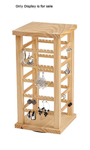 Entice your customers to take a second look with our natural wood earring display. Our earring display is a lightweight self standing unit that measures 7 3/8″W x 7 3/8″D x 15 3/8″H. Each tier features evenly spaced notches to attach earrings. The unit can also accept 2″H earring cards. The displayer rotates and can hold up to 100 pairs of earrings. 7 3/8″W x 7 3/8″D x 15 3/8″H , Natural Wood Finish , Self Supporting Rotating Base , Holds 100 Pairs of Earrings, 85-55447