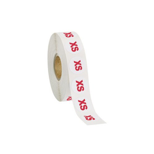 Size “XS” Self-Adhesive Round Size Labels are a smart way to label your merchandise on the sales floor. Customers will be able to easily see what size is available which will assist in keeping merchandise organized. Each of our self adhesive labels features a smooth ¾” diameter white matte finish with the letter XS in red print. Labels are sold 1000 per roll.Item Id: 85-93175