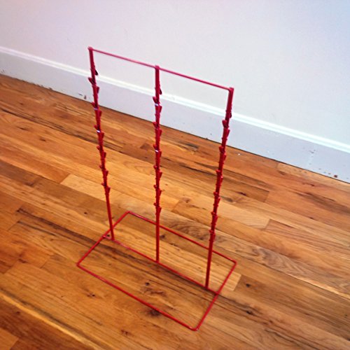 This display will accommodate a wide variety of bagged or hang tab products. Including chips and candy. Each row includes 13 clips allowing you to display product on both the front and back side with the top clips turned up to hold sign cards of the display. Add a counter display to your transaction counter and watch your sales take off!!.6″ space between strips. Size: 22 inches high x 14.5 inches wide x 9.5 inches deep. Color: Red Powder Coated Finish. Three Round Strips (holds 39 items in total) Item Id: 85-S339W