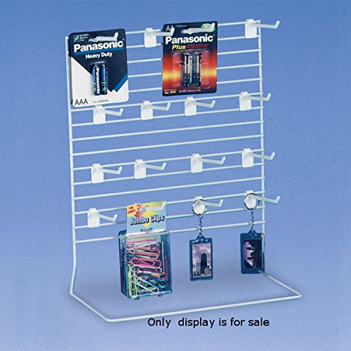 With the Small Peg Hook Countertop Display it is easy to merchandise a variety of peg pack or hangable items at the point of purchase.It has movable 4 inch plastic hooks that you can purchase as a set or without the peg hooks. Available in White. Plastic, Dimensions:8 in. w x 6 in. d x 11 in. h, 85-3343