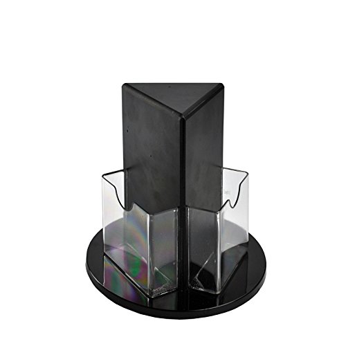 Tri-fold Size 3-Sided brochure holder measures 5″W x 9″H and revolves on a 9″ black base. Use for printed material measuring 4.125″W x 9″H. Made from crystal styrene. 5″W x 9″H, 3-Sided brochure holder , Revolves on a 9″ black base, Made from crystal styrene, Item Id:85-223220