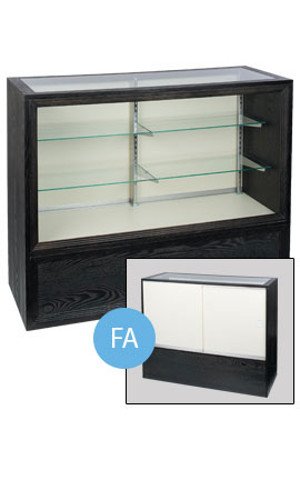 The 70″ Full Vision Glass Front Display Case with Charcoal finish is a modern classic that will give you years of affordable elegance and dependability for your retail store. Our case offers a number of features for your money that you will be happy that you took advantage of. Our display case features a durable wood grain finish with tempered glass top and front. Additional features include two rows of adjustable 1/4″ split glass shelves 8″ and 10″ depth, steel interior standards and shelf brackets. Wood crating for secure shipping is included in the price of the case. 38″H x 18″D x 70″L , Charcoal Black Finish , Sliding Rear Entry (ratchet lock sold separately) , 2 rows adjustable ¼” split glass shelves, 85-65984